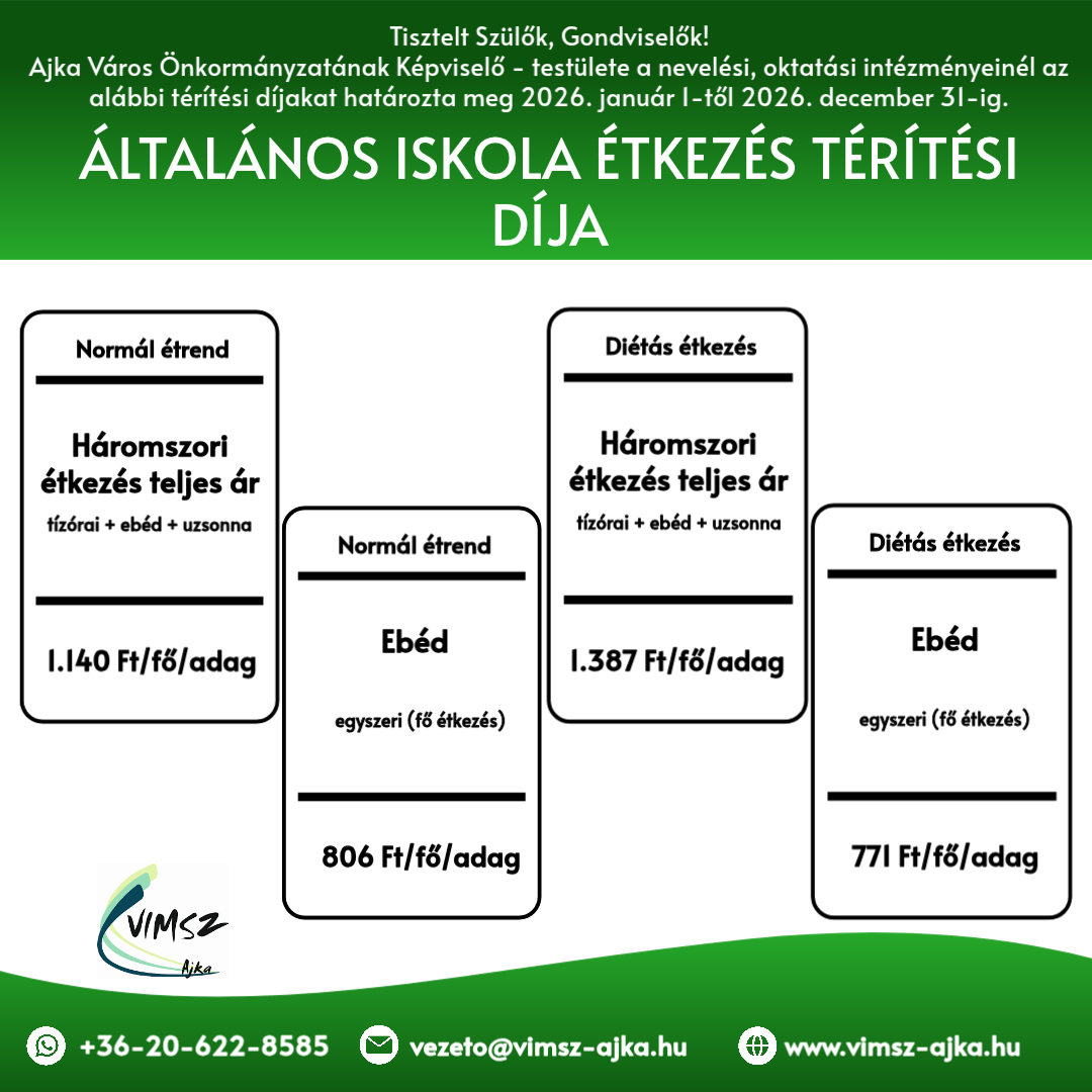 Térítési díjak 2026 január 01-től